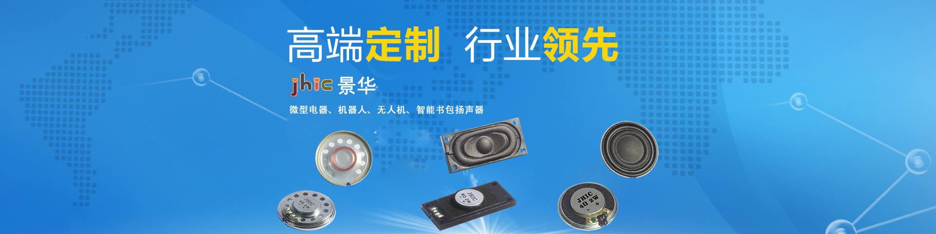 景华实业有限公司成立于1993年,是一家专业研发生产微型扬声器,喇叭,MIC数字麦克风,咪头,生产和销售一体的高新科技企业。现有员工1500人,生产面积38000平方米,年产3.5亿PCS发声器的生产能力。我公司技术研发总部在日本,拥有一支最棒的研发团队!和一系列国际专业的生产设备及领先设计高端微型扬声器新产品,公司技术力量雄厚,技术研发人员38人,专业质量检验人员68人,生产技术工艺35人,本公司不仅生产各种国际普通规格发声器元件,同时可以根据用户的需要提供各种高要求的产品与解决方案。